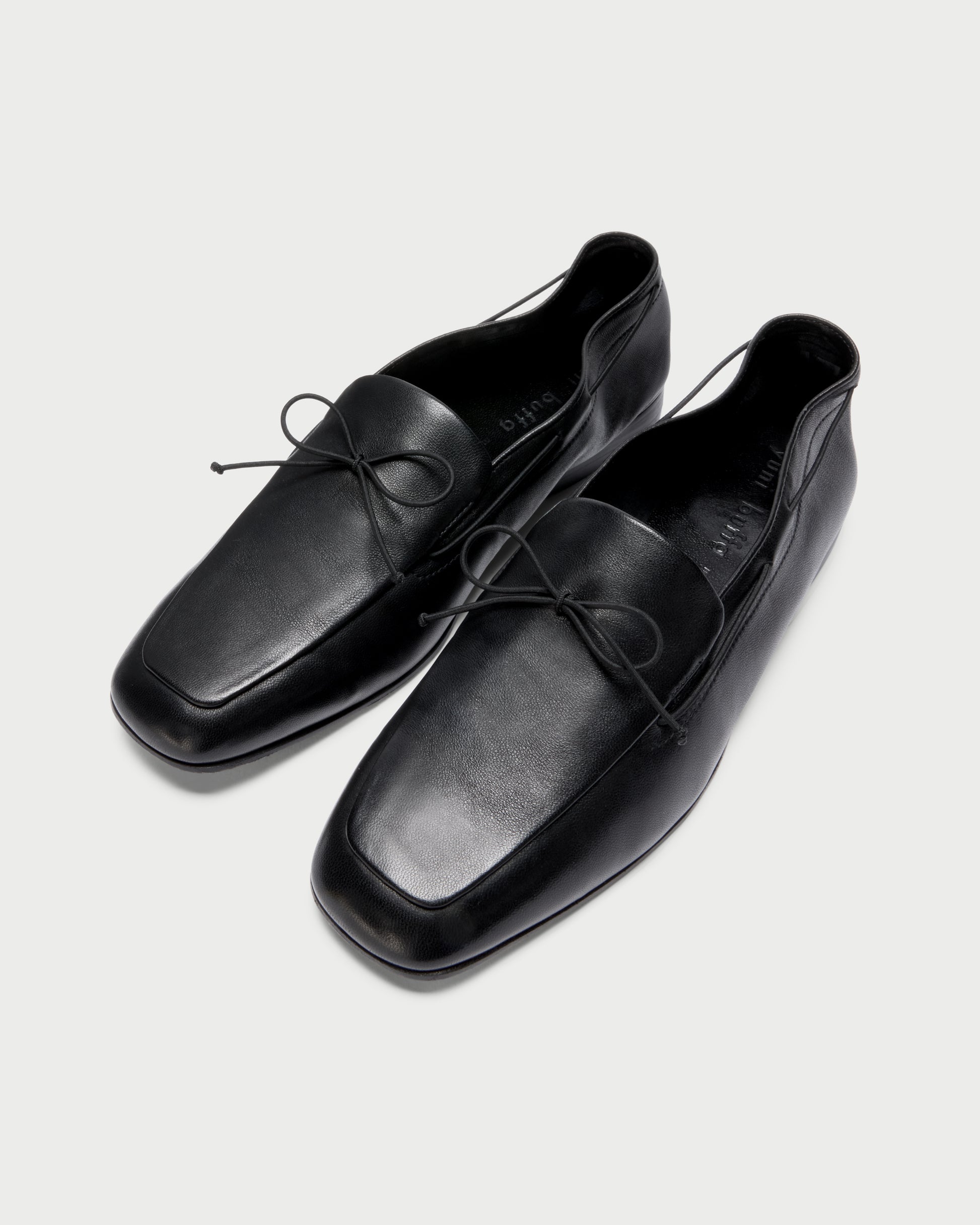 Inspired by leisurely days in Forte dei Marmi on the coast of Tuscany, our Marmi boat shoe brings together 90's prep refinement with the ease of life on the Italian riviera. The design, in timeless black leather, captures the effortless sophistication of coastal living, where classic nautical style meets modern Italian craftsmanship.